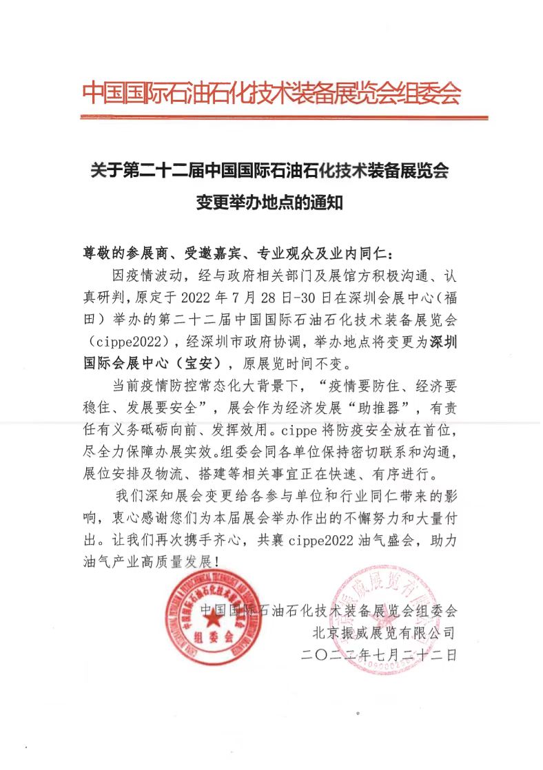 2022-07-072022年7月28日-30日,一年一度的世界石油天然氣大會——第二十二屆中國國際石油石化技術(shù)裝備展覽會(cippe2022振威國際石油展)將在深圳會展中心(福田)舉辦。展會聚焦油氣行業(yè)高質(zhì)量發(fā)展,聯(lián)動全球千余家企業(yè),現(xiàn)場設(shè)置石油、石化、天然氣、燃?xì)狻⒐艿?、非開挖、海工、氫能8大主題展區(qū),將有石油.........【詳情】