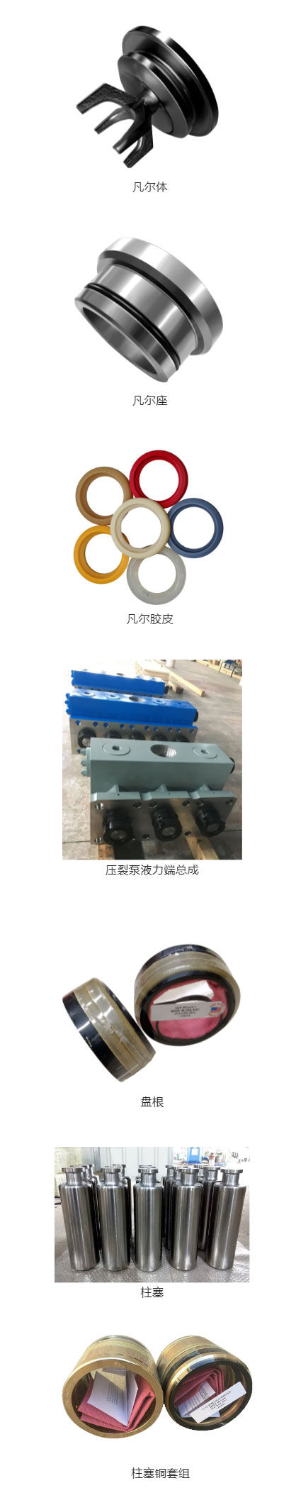 產(chǎn)品包括:壓裂泵液力端配件(盤根、凡爾膠皮、凡爾體、凡爾座、柱塞、液力端總成等)及車削密封件。