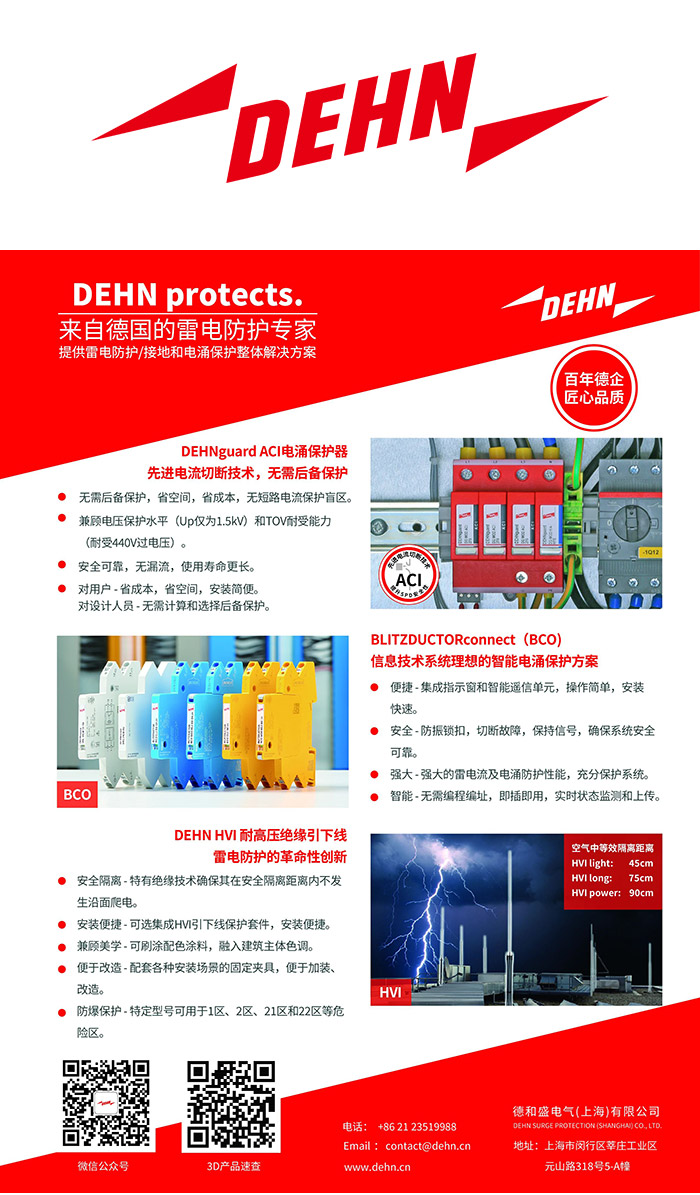一百多年來(lái)DEHN 一直為防雷和電涌防護(hù)提供可靠的產(chǎn)品和方案,保證用戶(hù)的系統(tǒng)及設(shè)備安全運(yùn)行。