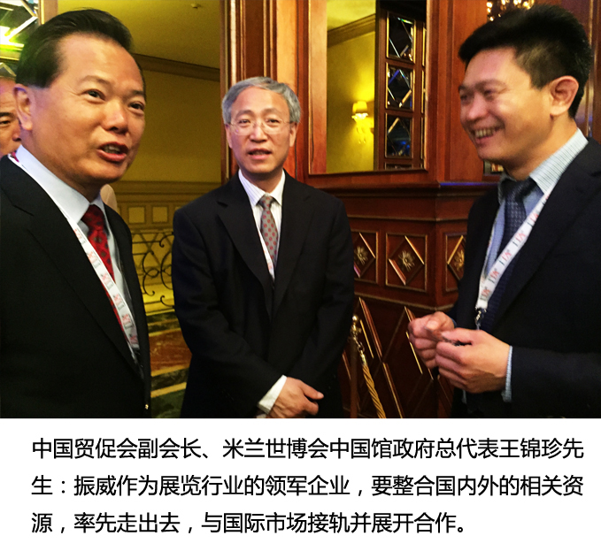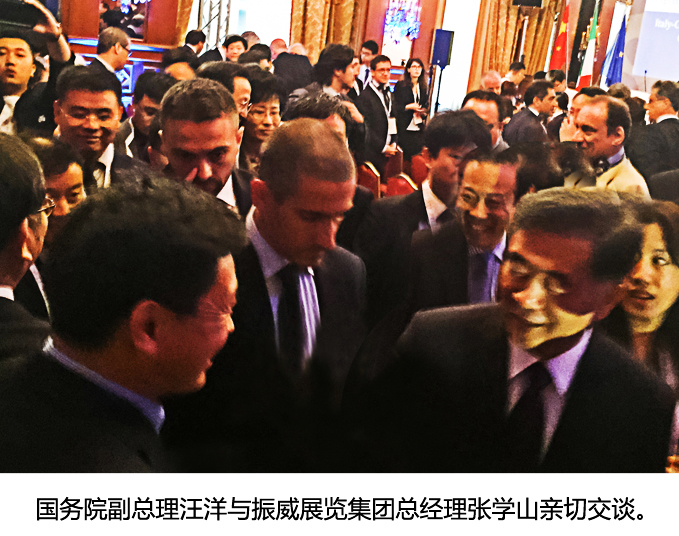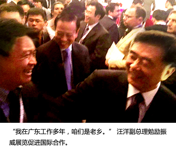 會(huì)后汪洋副總理接見了中紡集團(tuán)、北京首都農(nóng)業(yè)集團(tuán)、振威展覽集團(tuán)等企業(yè)代表。當(dāng)與代表們親切握手時(shí),聽說振威展覽集團(tuán)總經(jīng)理張學(xué)山來自廣東省,汪洋副總理風(fēng)趣的說,那我們算是老鄉(xiāng)了,我在廣東工作過多年,希望展會(huì)在國(guó)際交流與貿(mào)易合作中,起到橋梁和紐帶作用。