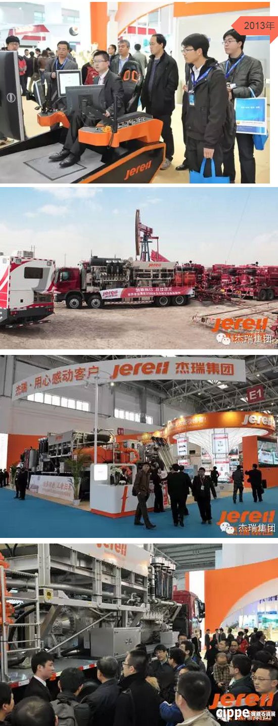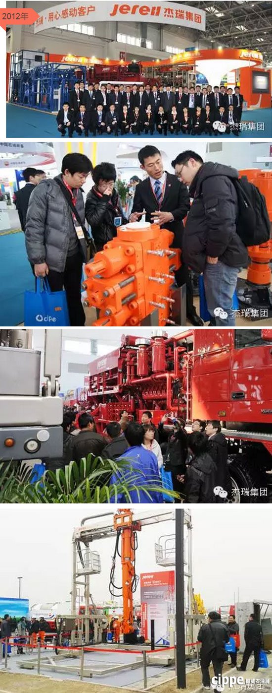 2012年,cippe展會(huì)上杰瑞最新研發(fā)和代表國(guó)內(nèi)最新技術(shù)水平的鉆機(jī)高空智能排管系統(tǒng)、340K不壓井作業(yè)設(shè)備、2500型壓裂車 、防爆連續(xù)油管橇組等高端油田專用設(shè)備亮相CIPPE。這也是杰瑞新logo第一次亮相展會(huì)。