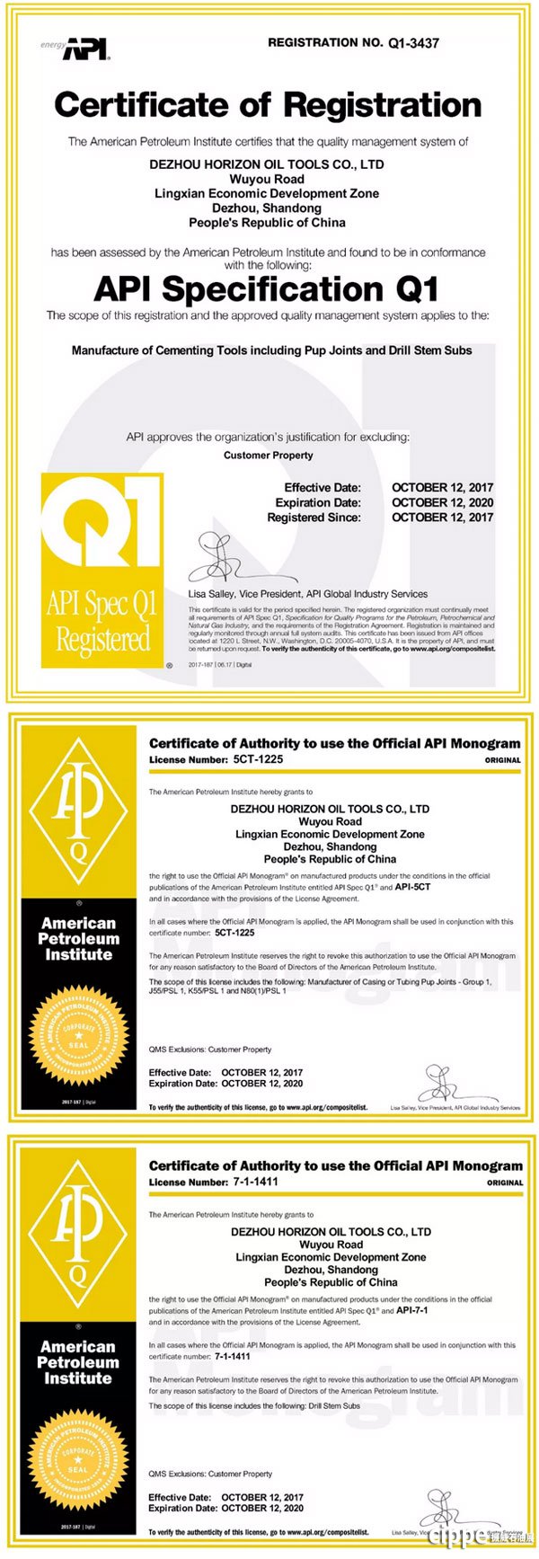 ◆ 通過(guò)美國(guó)石油協(xié)會(huì)API 5CT、API 7-1、API Q1相關(guān)認(rèn)證,并取得證書;