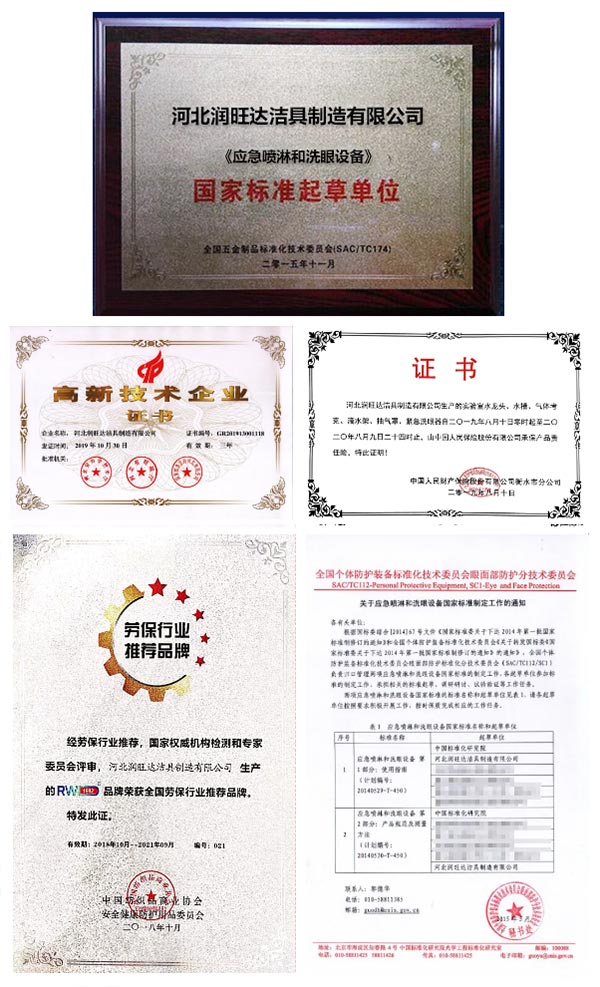 經(jīng)過多年發(fā)展,潤旺達(dá)公司斥資建立了同行業(yè)少有的產(chǎn)品檢測中心,擁有光譜分析儀、鹽霧測試機(jī)、壽命測試機(jī)、水壓密封測試機(jī)、氣密測試機(jī)、強(qiáng)度測試機(jī)、流量測試機(jī)等多臺先進(jìn)檢測設(shè)備,構(gòu)建高效的企業(yè)研發(fā)和產(chǎn)品檢測體系,參與起草制定了《GB/T38144.2-2019應(yīng)急噴淋和洗眼設(shè)備》國家標(biāo)準(zhǔn),并以先進(jìn)的研發(fā)體系,申請獲得了多項洗眼器專利證書,滿足并超越洗眼器行業(yè)需求。