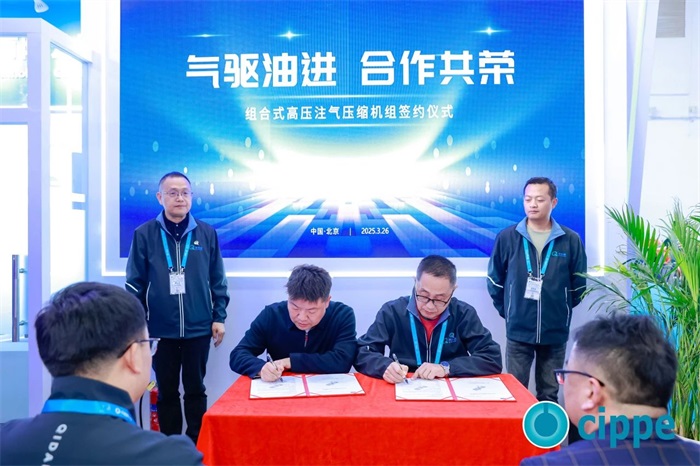 開展首日即迎來重要里程碑,武漢齊達(dá)康與山東佳脈在現(xiàn)場完成戰(zhàn)略合作簽約儀式,并達(dá)成高壓注氣壓縮機(jī)重要采購協(xié)議。這場強(qiáng)強(qiáng)聯(lián)合不僅彰顯國產(chǎn)裝備的技術(shù)自信,更為高端油氣裝備產(chǎn)業(yè)化應(yīng)用按下加速鍵。